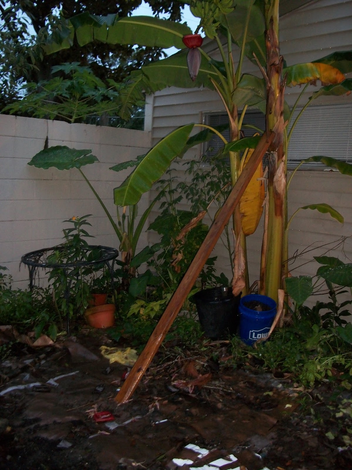 UPDATE: Matthew turned out to be a non-event here in Gainesville, aside from a few power outages and a wreck on the interstate. The banana is fine, and my power only went out for about a minute, so all is well. Hermine did more damage, but we were on the bad side of that storm. I feel for everyone who had bad garden and yard damage from Matthew. I feel blessed, and wish I could do something to help.